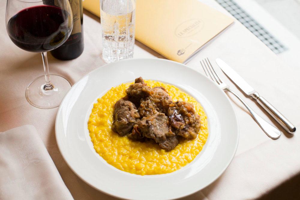 Nessun ossobuco è completo se non viene accompagnato con il vero risotto alla Milanese con lo zafferano: da Le Specialità lo serviamo infatti con quest’ultimo, preparato secondo la ricetta tradizionale, prima tostato, cotto a fuoco basso nel brodo e poi mantecato con burro e grana, in modo che gareggi in cremosità con l’ossobuco…