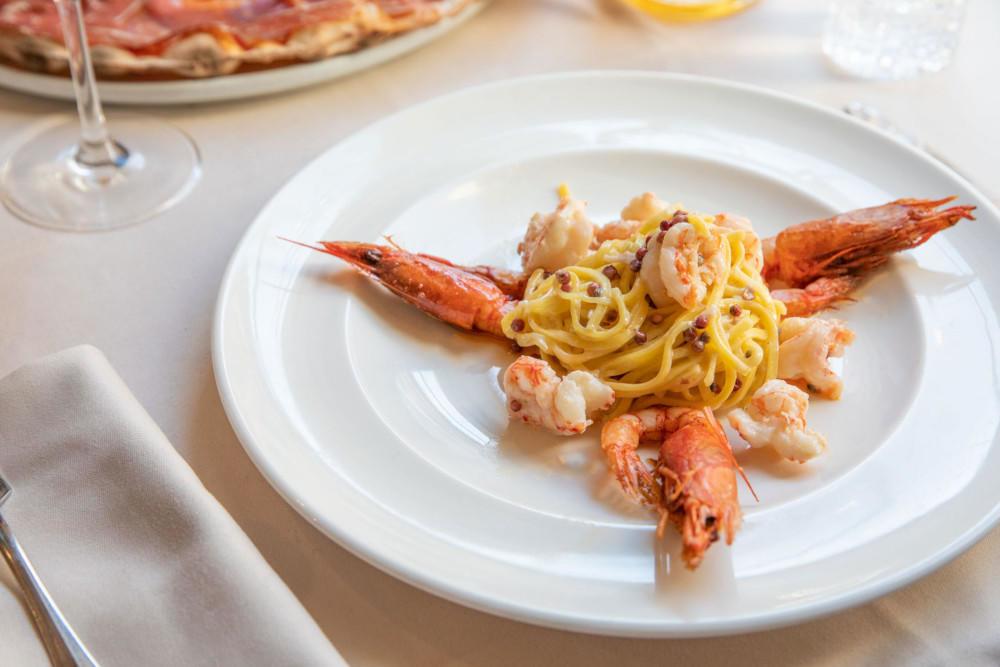 Tagliolini pepe rosa e gamberi